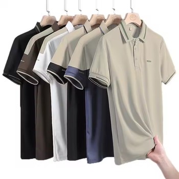 Erkek yüksek kalite çabuk kuru Golf için Polo GÖMLEK düzenli-Fit kısa kollu esneklik tasarım işlemeli tekniği katı desen
